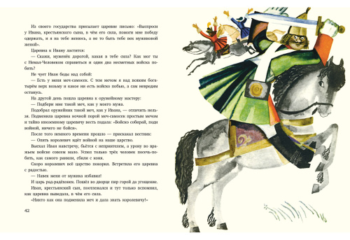 Юные читатели с удовольствием узнают, как Иван, крестьянский сын, победил злого волшебника Оха, от чего у коварной царевны выросли рога и почему злой царь-чернокнижник не нашёл доброго молодца по имени Синяя свита-Налево сшита-Соломенный колпак.