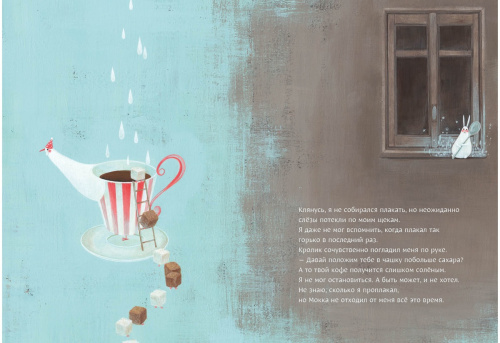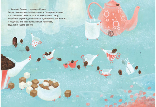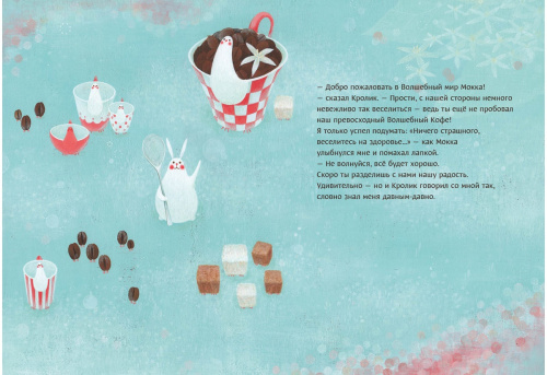 На страницах книги оживает невероятно ароматный мир — волшебный мир кофе. Здесь вы встретите необычных чашек-птичек и длинноносых кувшинчиков для молока, смеющихся кофейных зёрен и забавных кубиков сахара, увлекающих своего читателя в весёлый хоровод. Главный герой этого удивительного мира — очаровательный Кролик Мокка, выдуманный маленьким мальчиком когда-то в детстве.