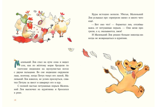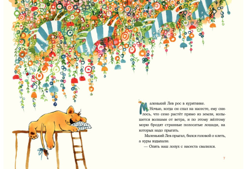 Маленький Лев живёт в курятнике. Куры любят своего большого и странного детёныша, но не очень-то довольны его воспитанием: лев не умеет кукарекать и не хочет клевать зерно. Однако он прекрасно видит в темноте и может ловить рыбу всю ночь, а ещё ему снятся бескрайние жёлтые поля и гуляющие по ним необыкновенные звери… Кажется, он какая-то неправильная курица! Да и курица ли вообще?..
