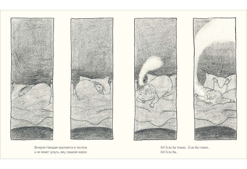 Никодим — обычный мальчишка. Каждый день он ходит в школу, а там на каждом шагу поджидают испытания! Противный Ипполит требует отдать ему шарики, беспечная Лена случайно опрокидывает его завтрак, а учитель наказывает за забытую тетрадку… «Вот бы стать супербольшим и суперсильным…» — мечтает Никодим. Но что, если он может всё преодолеть — и даже подарить цветы своей подружке?