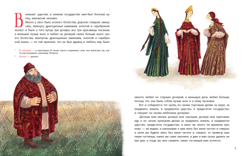 У одного богатого купца было три дочери-красавицы. Однажды, отправляясь в далёкое странствие, он пообещал привезти им всё, что они пожелают. Две старшие дочери попросили диковинные подарки, а младшая — аленький цветочек, краше которого нет во всём белом свете…
