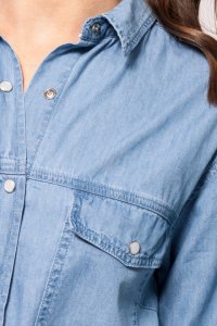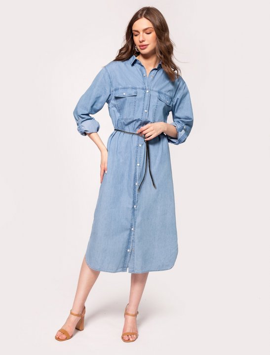 Джинсовое платье-рубашка-универсальная палочка-выручалочка любой модницы! Платье свободного кроя из натурального 100% хлопка, с отложенным воротником, карманами на груди, и акцентными, классическими для денима кнопками с перламутровой шляпкой.Такой силуэт подчеркнет вашу фигуру и скроет все недостатки. Идеальный выбор на каждый день!