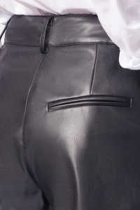 Шорты бермуды из экокожи.Одежда кожаной фактуры – тренд, который актуален уже несколько сезонов, включая SS’21. Длина и высокая талия подчеркивают фигуру и скрывают недостатки. Универсальный черный цвет. Застежка на молнию.