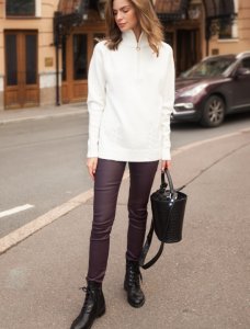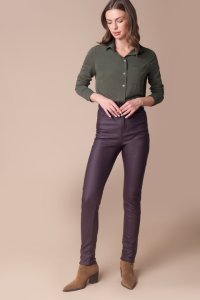 Брюки из эластичной и формоустойчивой эко-кожи. Это ткань смесового состава с эластаном. С покрытием под кожу. Одежда кожаной фактуры – тренд SS’21 по версии Vogue. Легко комбинируется практически в любых луках. Высокая посадка акцентирует талию. Модель дополнена высококачественной фурнитурой. Отличное решение для влажной и прохладной погоды.