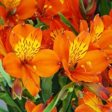 Высота растения 100см, цветки похожи на лилии, желто-оранжевые с темным рисунком. Цветение июль-август.