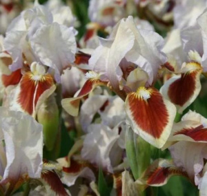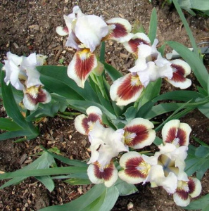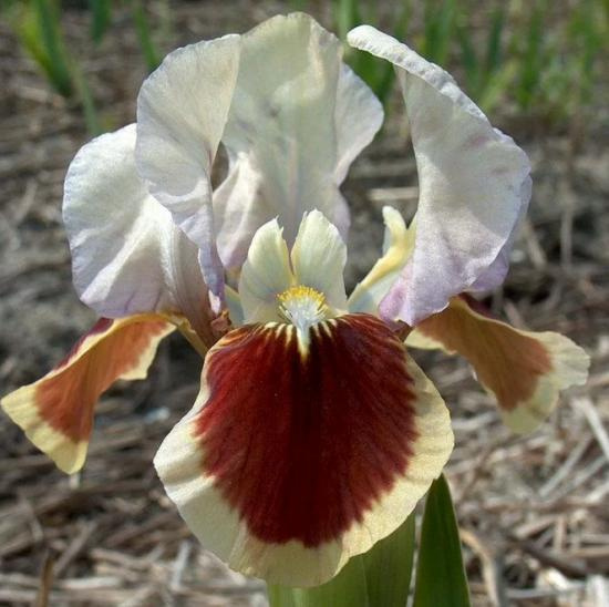 Высота растения 20см, нижние лепестки с шоколадно-красным глазком и широкой светло-желтой каймой, верхние - бело-сиреневые.