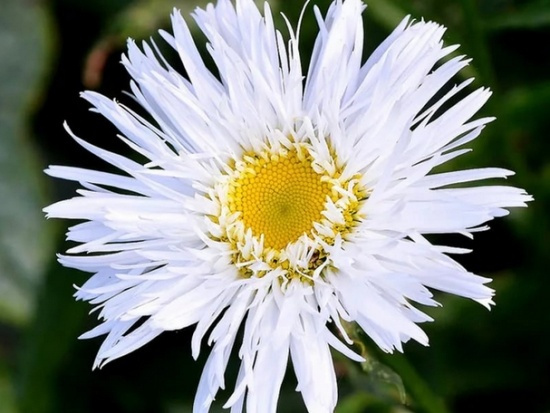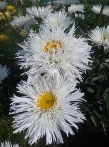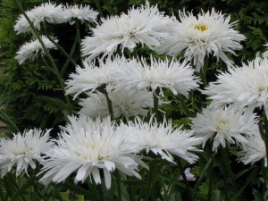 Высота растения 75см, белый, махровый с рассеченными лепестками.