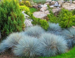 Многолетнее растение с многочисленными тонкими сизыми листьями. Образует четкие полукруглые сизо-голубые кочки с прямыми цветочными метелками.