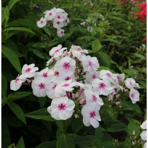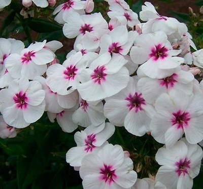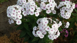 Высота растения 55см, цветки белые, слегка рифлёные, бархатистые, колесовидной формы. У самого основания имеют по два штриха пурпурно-лилового цвета.