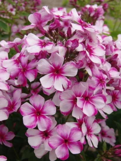 Флокс из серии "NEON", на белом фоне цветка малиново-сиреневые тени и штрихи, в центре - лучистая звездочка. Очень красивый.