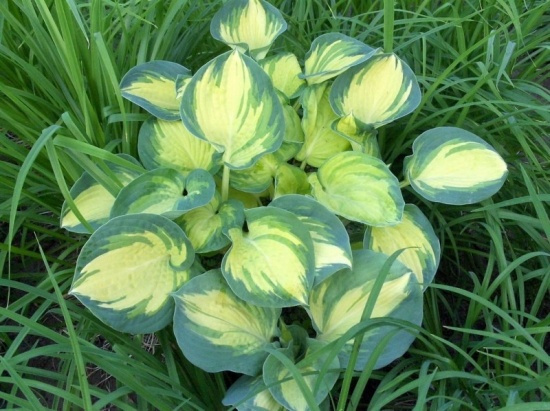 Плотные листья с желто-зеленым центром и темно-зеленой каймой, цветы белые, устойчива к повреждению слизнями.