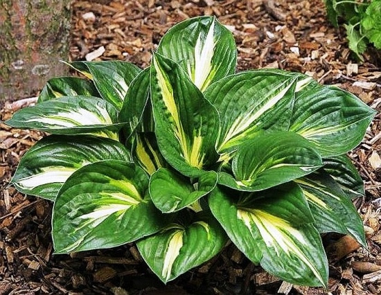 Листья глянцевые, темно-зеленые с вертикальными, чуть разветвляющимися кремово-салатовыми полосами.
