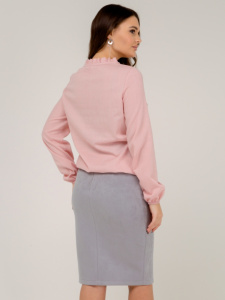 Блузка свободного силуэта из тонкой ткани с принтом. Резинка по низу изделия и рукава. Оборка по горловине переходит в завязку-бант. Длина по спинке 61 см. 50% хлопок, 50% полиэстер