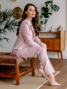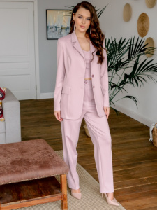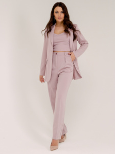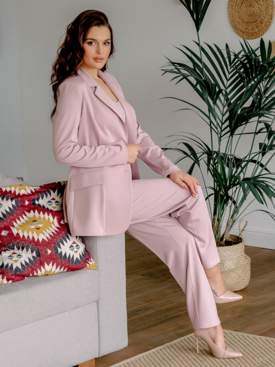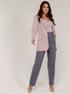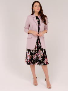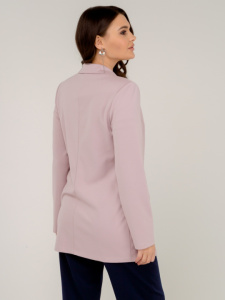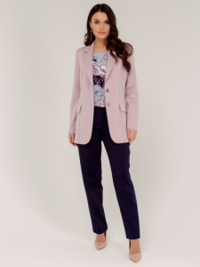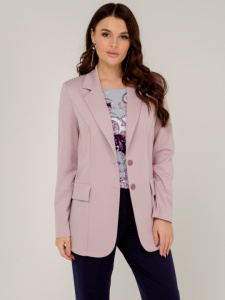 Жакет оверсайз полуприлегающего силуэта из трикотажа со стрейчем. Воротник отложной с лацканом. Рельефные швы. Спереди застежка на 2 пуговицы. Отделочные клапаны. Жакет без подкладки. Длина по спинке 74 см. 60% вискоза, 30% полиэстер, 10% эластан
