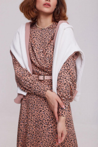 Платье приталеное, сзади на молнии, в комплекте с поясом. Манжеты застегиваются на петли и пуговицы.