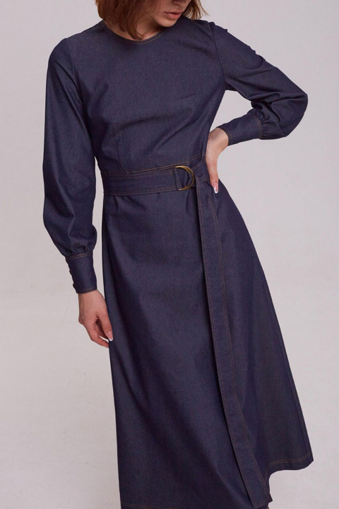Платье приталеное, сзади на молнии, в комплекте с поясом. Манжеты застегиваются на петли и пуговицы.