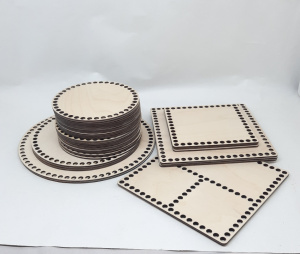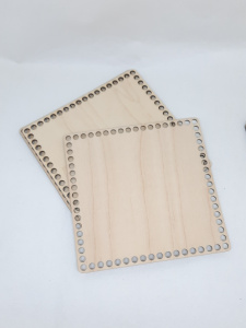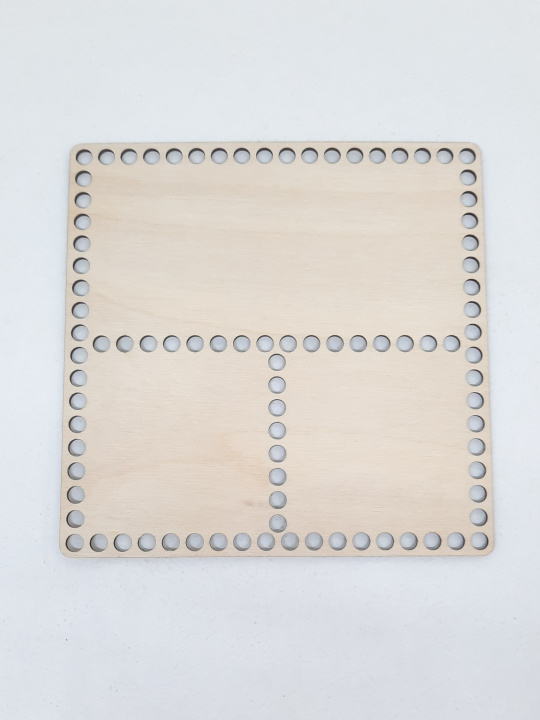 Основа для рукоделия из дерева в форме квадрата 20х20 см и с отверстиями по периметру диаметром 8 мм, а так же с раздлением на секции. Используются для вязания шкатулок, корзинок и настольных органайзеров. Дерево- берёза, основа качественно отшлифована.