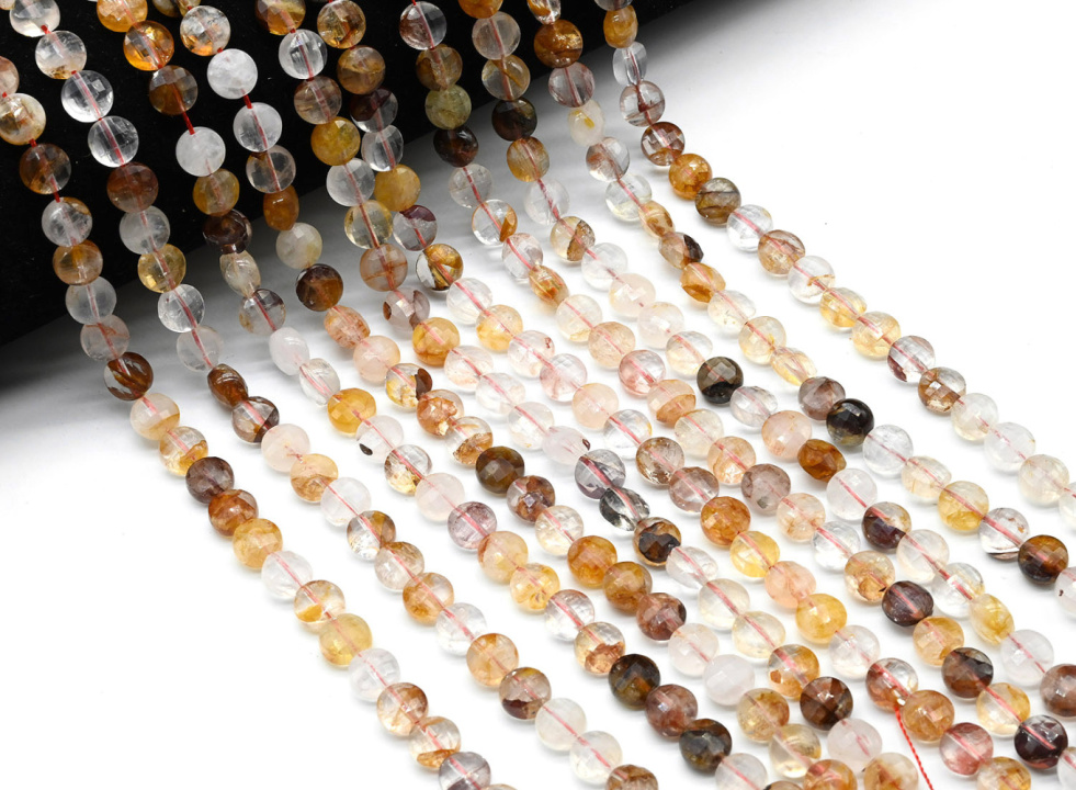 •Цена за нитку. •Количество бусин: 47 ± 1шт. •На поверхности камня допустимо присутствие природных неровностей и микротрещин. / Горный хрусталь / Россия