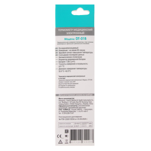 Цифровой электронный термометр. Легкочитаемый жидкокристаллический экран. Безопасен, не содержит ртути. Время измерения 1-4 минуты. Звуковой сигнал по окончании измерения. Память на последнее измерение (отображается на дисплее). Точность измерения +/-0,1°С (в диапазоне 35.5°С - 42.0°С). Футляр для хранения. Электронный цифровой термометр предназначен для измерения температуры тела ректальным, аксиллярным (подмышечным) и оральным способами. Прибор относится к категории медицинского оборудования для домашнего назначения и может быть использован всеми членами семьи как дома, так и в лечебных учреждениях. Управление прибором достаточно простое и осуществляется единственной кнопкой, расположенной рядом с дисплеем. Термометр оснащен функцией автоматического отключения после бездействия в течение 10 минут, что существенно позволяет экономить заряд батареи и надолго продлить срок службы эксплуатации прибора. Термометр работает от одного элемента питания, замена которого осуществляется достаточно легко и просто. Измерение температуры тела продолжается даже после звукового сигнала.